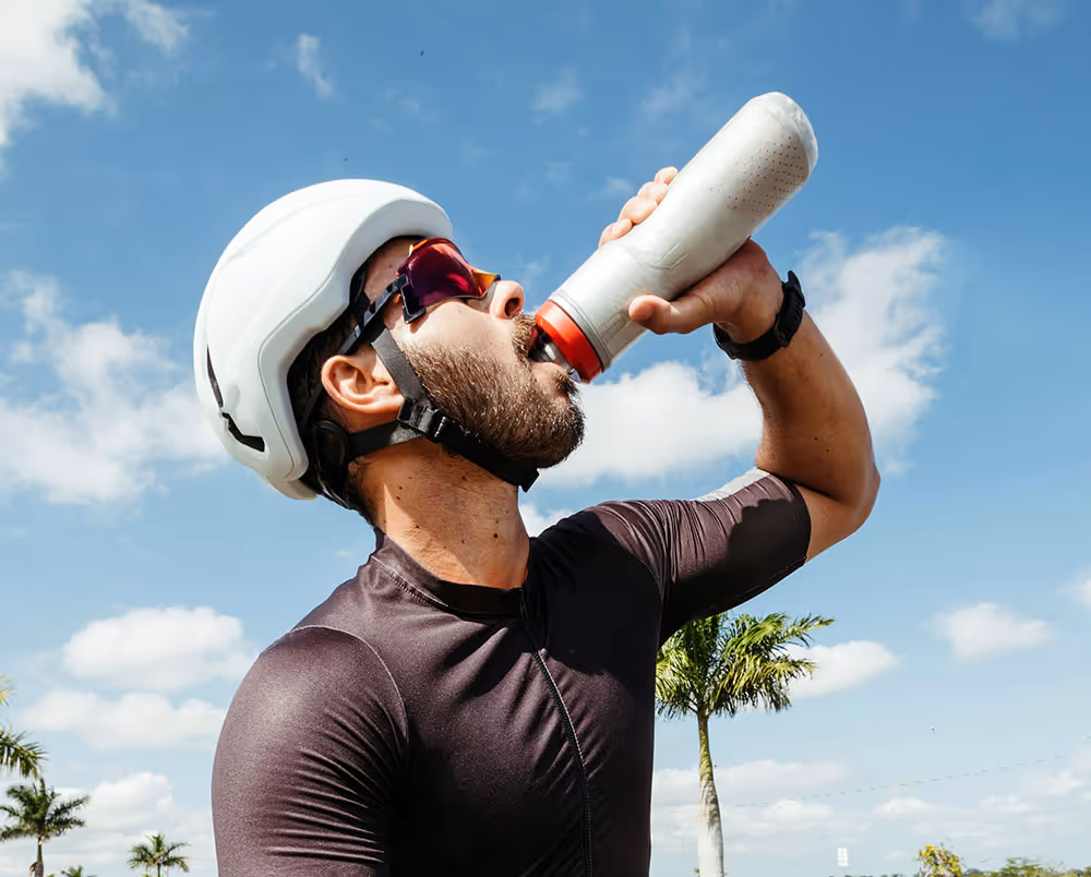 Most people don’t realise they’re already dehydrated before they even get on the bike. If you’ve had a salty dinner the night before, a couple of glasses of wine or beers, and no water before bed, then you’ve started your day behind the curve.
